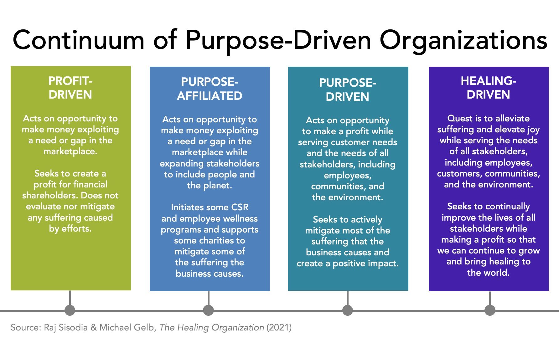 We recognize that organizations exist on a consciousness continuum from profit-driven to actively healing the world. Our programs and trainings help them move to be purpose-driven and healing focused.